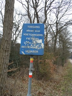 buiten Hoenderloo zien we het bordje "TOEGANG alleen voor VOETGANGERS