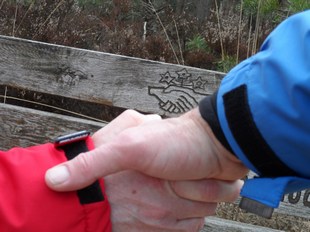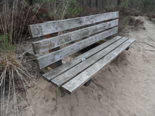 Schansenberg, waarop een bankje staat ter gelegenheid van een jubileum