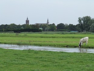 de weilanden de kerktoren van De Rijp.