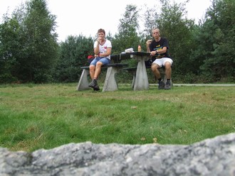 Een echtpaar komt even later bij ons zitten aan de picknicktafel.