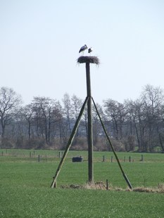 een paar koppels ooievaars zijn inwoners van het dorpje. De