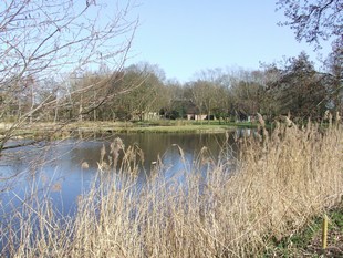 mooi bospark met vijverpartijen. Bij de ingang (voor ons de uitgang)