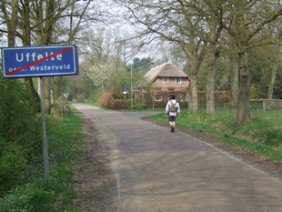 Vandaag is het Tweede Paasdag en mooi weer. Aangezien een etappe van 20 km of meer teveel lijkt voor Alie kiezen we een korter traject: Uffelte-Wittelte (ca. 15 km volgens de kaart). We hebben daardoor wat ruimer de tijd. We rijden met de auto naar Wittelte en parkeren de auto in de berm, direct aan de route.