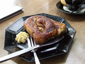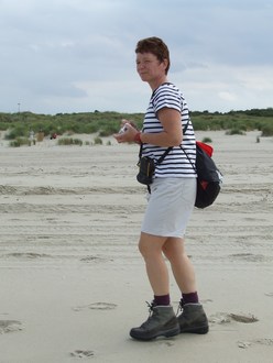 Het weer is opnieuw prima, wel af en toe bewolkt, maar de zon laat zich ook regelmatig zien. We zetten de auto neer bij het eindpunt bij Vrouwenpolder aan het begin van de Veersedam. Daarna stappen we op de fiets op weg naar Westkapelle om ze op hetzelfde plekje te stallen als de vorige etappe. Vooral het laatste stuk over de dijk was een flinke trap tegen de wind in. Iets over 11 uur vertrekken we in Westkapelle, maar na 100 meter duiken we eerst een terras op voor een kopje koffie. In mijn geval vond ik het tijd om een echte "Zeeuwse Bolus" te proberen. Alie durfde het niet aan en koos voor appeltaart.