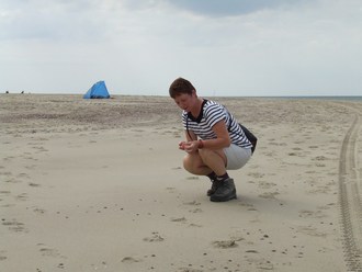 Veel branding is er niet maar er zijn leuke schelpjes te vinden