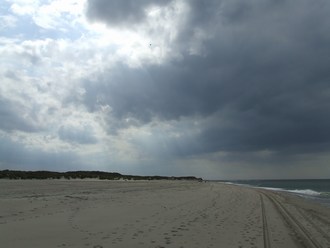 maar nu volgt de route enkele kilometers het strand tot Vrouwenpolder.