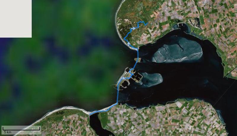 De route over de Oosterscheldekering is 9 kilometer lang en bepaalt