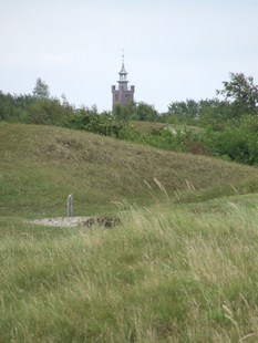 is, maar ook voorzien is van duinen. Op de kruin van de dijk hebben