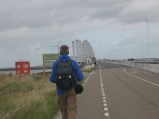 De voorbereiding thuis via de Ov-site www.9292ov.nl levert op dat er een goede busverbinding bestaat over de Oosterschelde en dus laten we de fietsen bij Hotel de Kroon in Wissenkerke achter. Na het ontbijt rijden we naar de parkeerplaats bij Vrouwenpolder en we bestijgen de Veersegatdam om van Walcheren naar Noord-Beveland te wandelen.