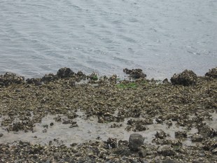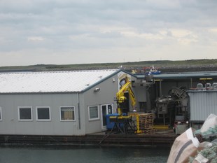 Neeltje Jans nemen we even rust. We hebben zicht op een mosselkwekerij.