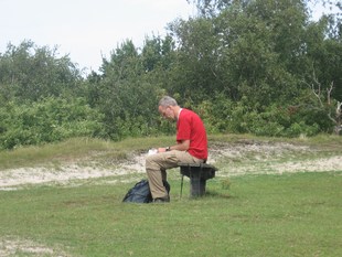 aangekomen in Haamstede, begint het toch nog flink te regenen!