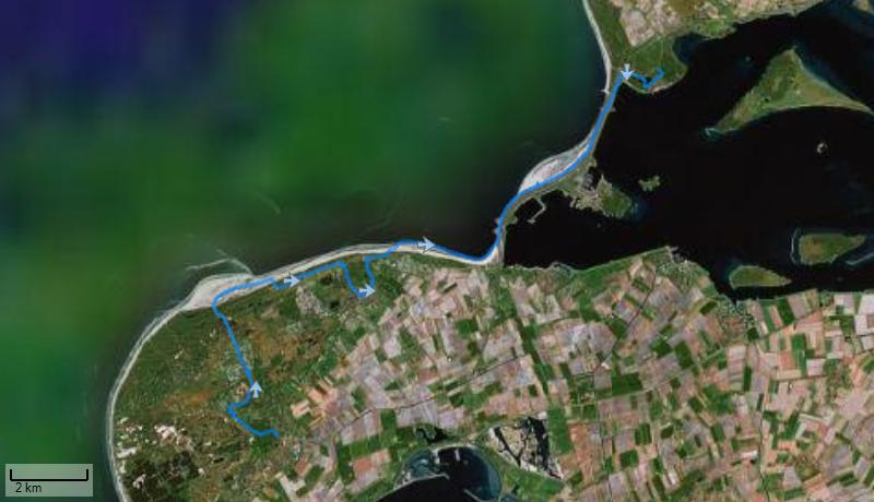 ongeveer 3 kilometer. Vanaf het strand klimmen we op de Brouwersdam,