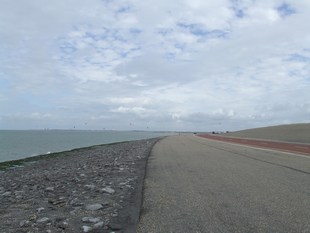 weg nu over het fietspad op de kruin van de Brouwersdam. Dit geeft