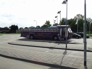 Hier kijken we op de bushalte en zien dat de bus over een half