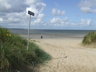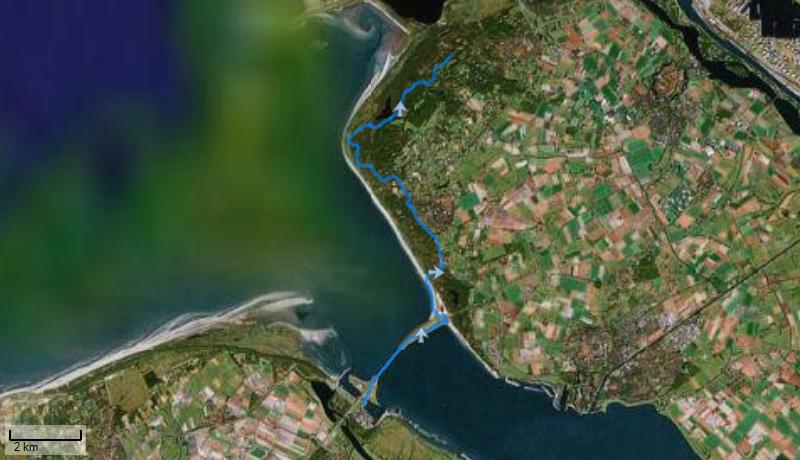 N57 door komen we bij het strand en wandelen 1,5 kilometer tot