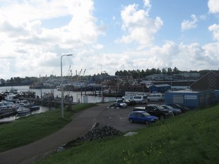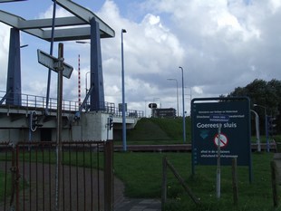 de auto hebben geparkeerd en wandelen over de Goereese sluis naar