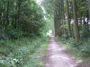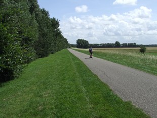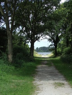 het meer volgen komen we bij de dijk via een lommerrijk laantje.
