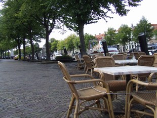 terrasje. Alleen moeten we nog een ommetje maken over de vestingwal