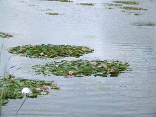 Rozenburg zien we eerst nog mooie partijen waterlelies in de gracht,