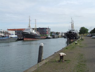 Vanaf de oprit naar de veerpont maken we een rondje langs de sleepbotenhaven