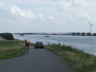 De route gaat volgens het boekje vrij dicht langs de stormvloedkering,