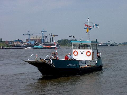 Om twaalf uur kwam het pontje "Heen en Weer V" om ons naar de overkant te brengen.