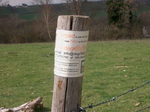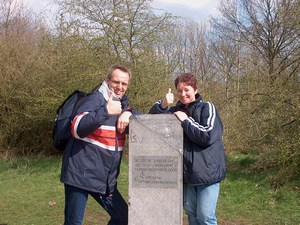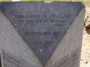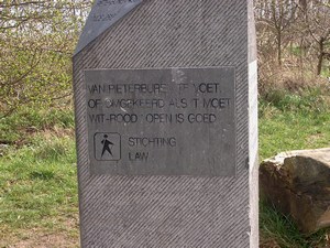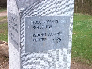 Op het paaltje staat dat het Pieterpad pas het begin is: De tocht naar Nice begint hier eigenlijk pas! Nog 2512 kilometer te gaan&.. We houden het toch maar eerst op het lopen van het Drenthepad, waar we inmiddels mee zijn begonnen. Misschien stiekem eens kijken op www.gr5telijf.nl