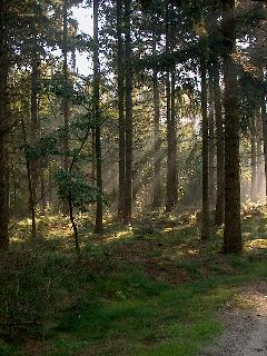Aangezien het de afgelopen nacht had geregend was het iets nevelig. Dit in combinatie met een zonnige dag zorgde voor mooie plaatjes van zonnestralen tussen de bomen: