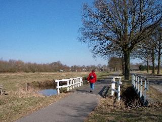 Na ongeveer twee kilometer en heel veel pieterpaddende tegenliggers kwamen we bij de afdaling naar de Drentsche Aa.