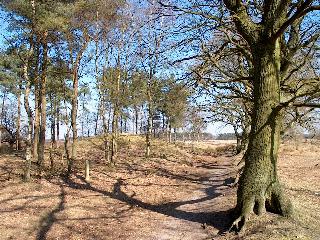 We letten hier goed op de routebeschrijving aangezien de twee dames die we in de etappe naar Rolde tegenkwamen hier fout waren gelopen. Maar goed, we lopen in de andere richting, dus is de route misschien minder verwarrend. Het was inderdaad wel even opletten maar we konden de route zonder problemen vinden. Zo kwamen langs grafheuvels, groepjes bomen en natuurlijk heide......