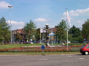 Door de koffiestop is de lunchstop iets verschoven. We wilden eigenlijk wel neerstrijken langs de Maas, die we een eind moesten volgen. Maar dat bleek toch op enige afstand te zijn, zodat er niet een mooie picknickplek was te vinden. Een stuk verderop kwamen we langs een tuincentrum, waar ze hun producten ook in eigen tuin hadden toegepast.