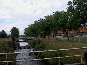 Onderweg lijkt het weer op te klaren. De zon laat zich al weer regelmatig zien. We rijden naar Vierlingsbeek, waar we de auto bij het station parkeren. Dit betekende wel dat we eerst een kilometer naar het 'officieel' startpunt van de etappe moeten lopen. Maar na een klein kwartiertje stappen is de kerk van Vierlingsbeek om 9.20 uur bereikt. Opvallend is opnieuw de uitstekende markering op dit deel van het Pieterpad. Bijna iedere lantaarnpaal in het dorp is van de wit-rode strepen voorzien. Een eindje buiten het dorp duiken we een smal paadje in dat verderop langs een beek leidt en tenslotte uitkomt bij hofstede Makken. Hier stond vroeger kasteel Makken. Aan de bijgebouwen was daar nog iets van te zien.