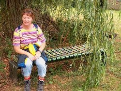 Daarna kwamen we over het terrein van een kasteeltje. Naast een met bloemen beschilderd bankje liep de route zelfs door het poortgebouw van het kasteel!
