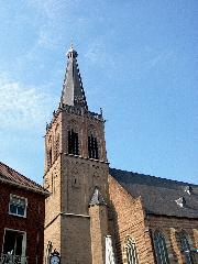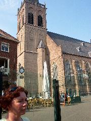 We hebben op het kerkplein lekker gegeten op het terras. Eigenlijk was dit voor ons het echte eindpunt van de etappe. De schoenen even uit.... Heerlijk!