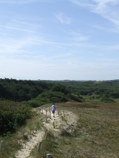 door het fraaie duingebied en komen na bijna 8 kilometer wandelen bij