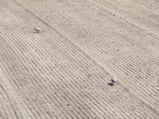 op een stuk pas ingezaaid land. Of ze ook als trekvogels aangemerkt