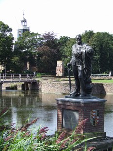 en een slotruïne met een standbeeld van de "Graaf van Egmont".