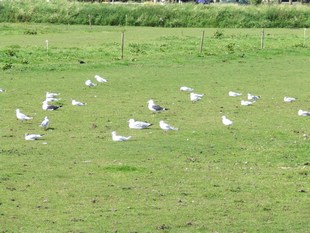 een groep vogels, meeuwen deze keer. Geen trekvogels, toch? We wandelen