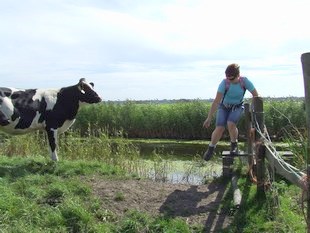 nu een aantal kilometers door weilanden langs de Hoevervaart. De hekken