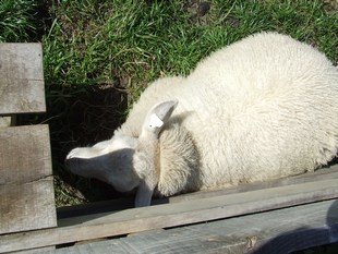 Bij het laatste overstapje lag een schaap precies onder de treden te