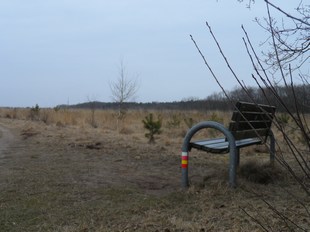 bankje aan de rand van het veld bij het bos, is het hoogste punt in het