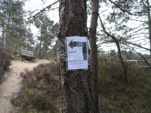nu nog de vele aanwijzingen links en rechts door het bos. Bijna niet te