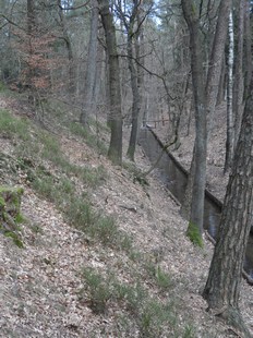 twee etappes naar beneden gaat. Een stuk verder, na de weg tussen