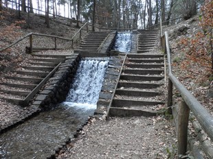 komen eerst langs de zogenaamde 'Kleine Waterval" waar het water in
