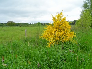 bremgeel. We zien op het fietspad zelfs nog een paar (dode) meikevers.