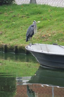 stadsgracht al een vogel tegen! Een vissende reiger. Een aantal