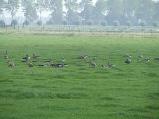 weiland zien we een groep grauwe ganzen zitten. Na 9 km wandelen komen