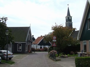 de weilanden de kerktoren van De Rijp.