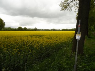 Een fleurig koolzaadveld na 4 km geeft wat extra fleur aan onze