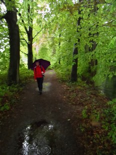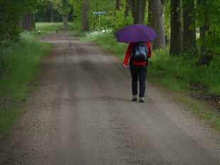 regenjas, paraplu niet om droog te blijven. Gelukkig is de route hier